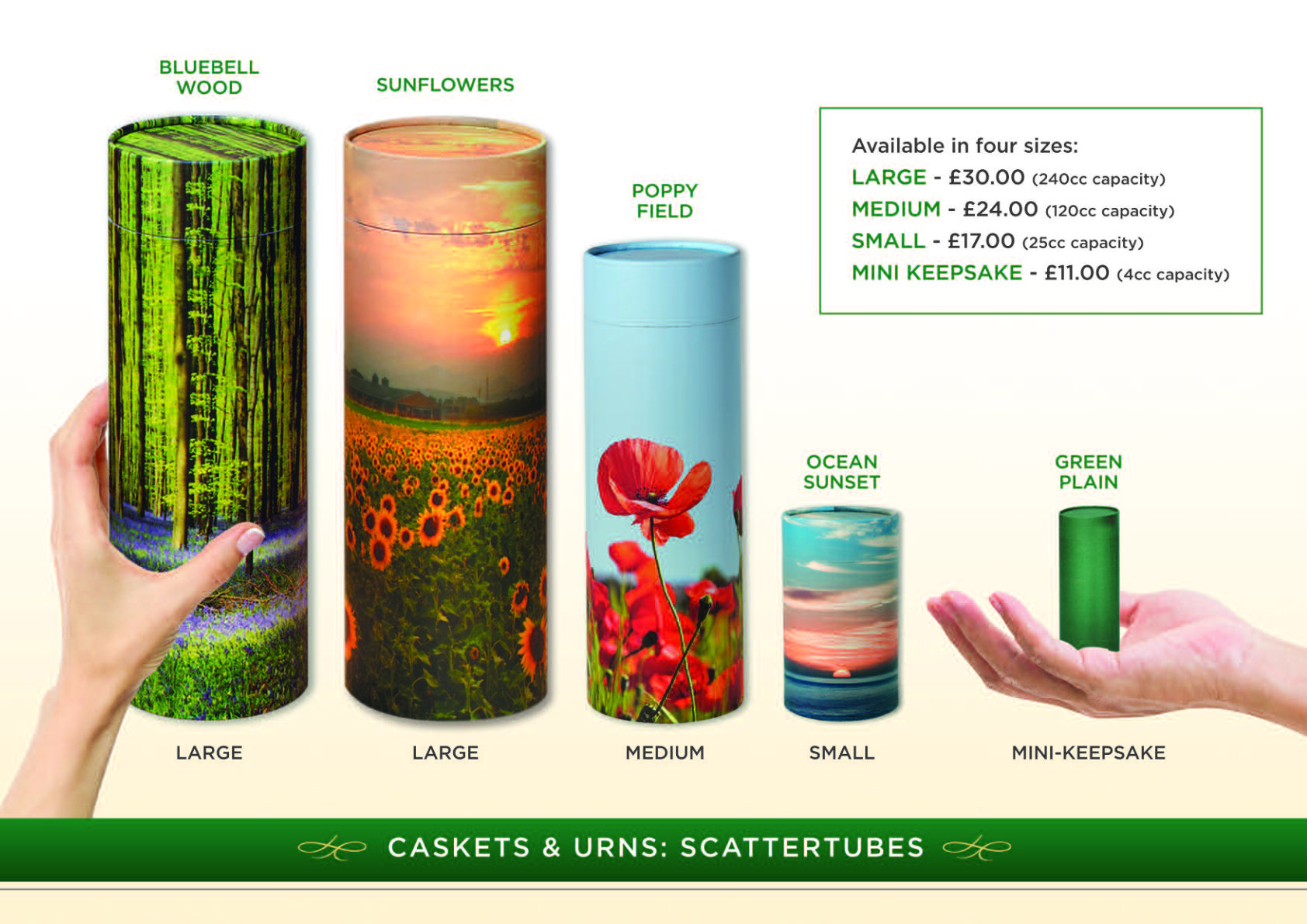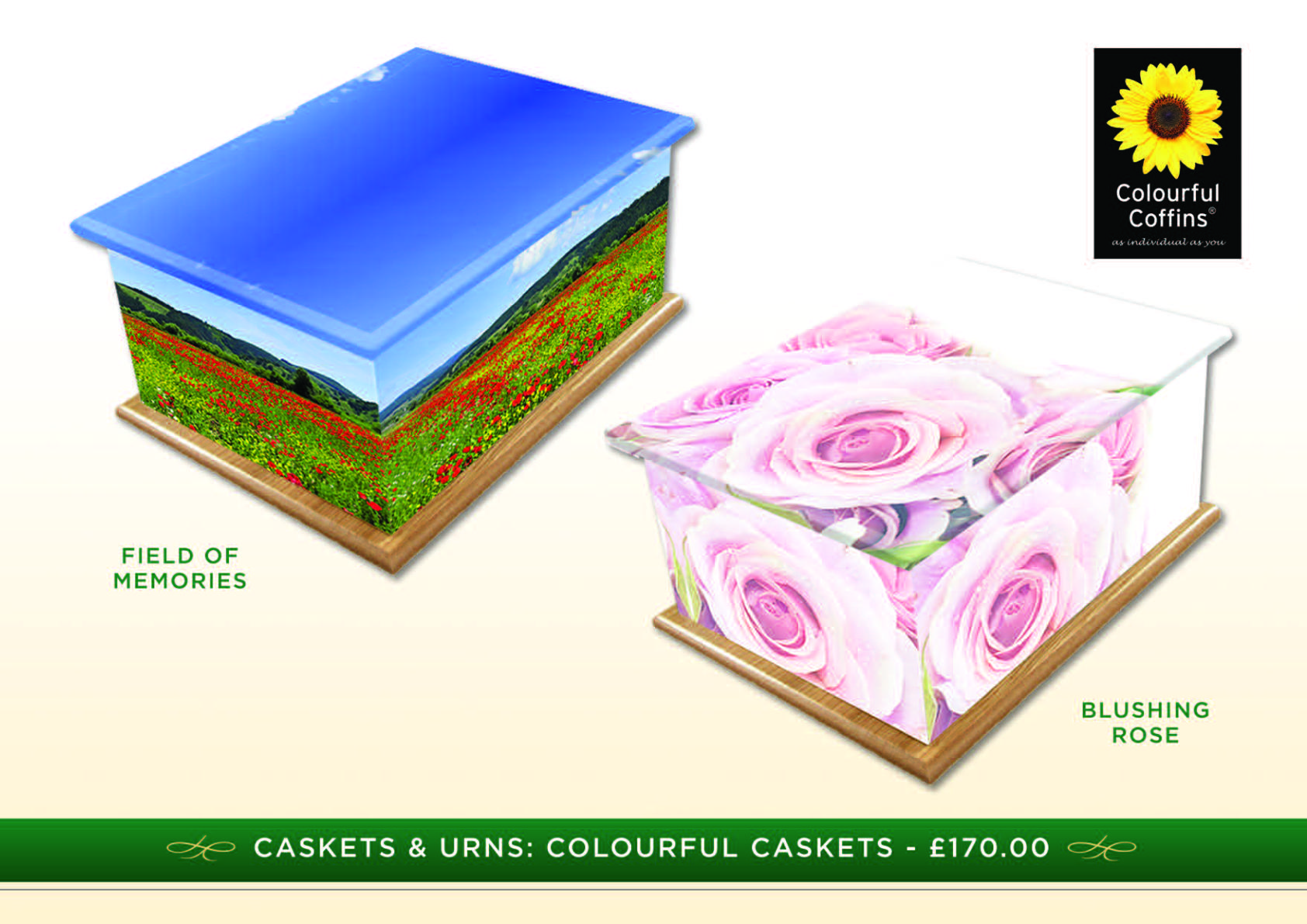 CASKETS & URNS This is only a small selection of the Caskets, Urns and Scatterpods we can supply. To view our full range in person please call to arrange a visit to our showroom on 01858 462524 or email enquiries@jstampsandsons.co.uk CASKETS Traditional Colourful Caskets Wooden URNS Leaf urns Metal SCATTERTUBES Scattertubes